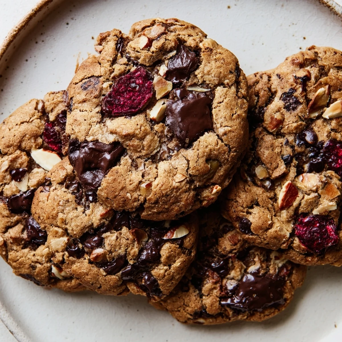 The gluten-free flour blend creates a tender texture that holds up well to the generous mix-ins. Each cookie delivers a satisfying contrast of smooth chocolate, sweet-tart cherries, and nutty crunch throughout.