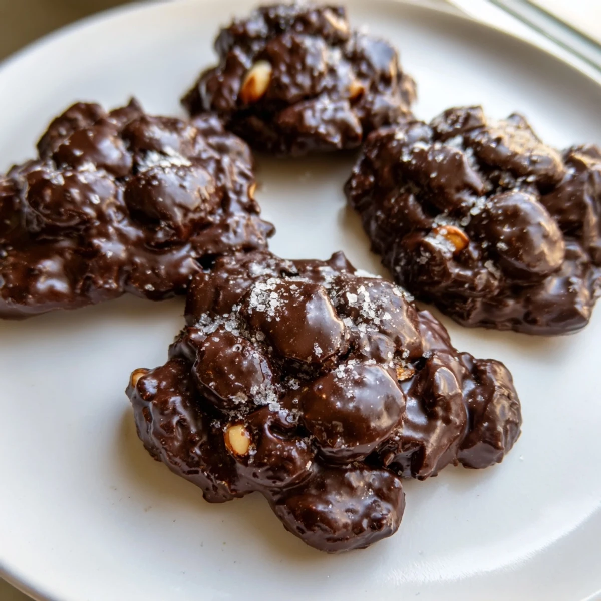 Salt intensifies the chocolate's natural sweetness and creates a sophisticated flavor profile. The contrast between salty and rich makes these clusters more compelling and satisfying to eat.