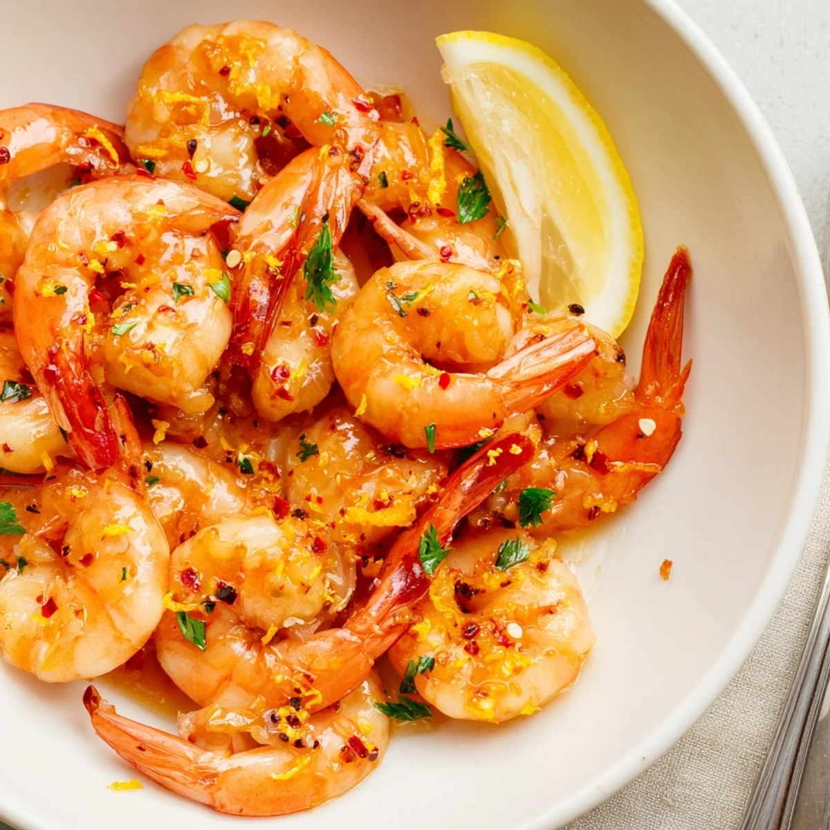 Large shrimp are seared in a hot skillet with olive oil, garlic and red chili until just pink. A quick lemon-honey-soy glaze with zest and juice is added and simmered briefly to thicken, coating each shrimp in bright, spicy-sweet flavor. Finish with chopped parsley or cilantro and a squeeze of lemon. Ready in about 20 minutes for a vibrant weeknight main.