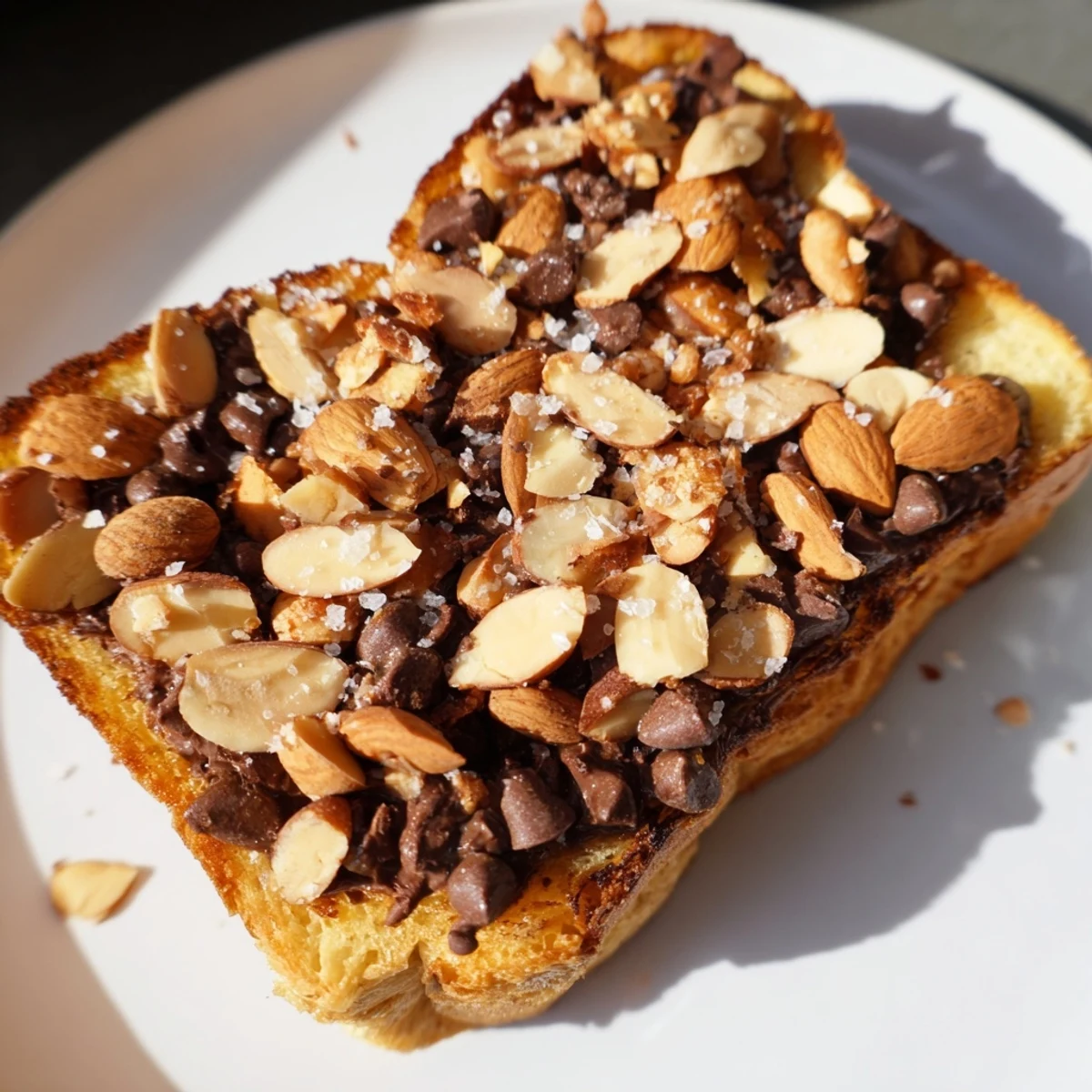 Enjoy a cozy indulgence with thick slices of bread topped with a buttery cinnamon spread, toasted almonds, and semi-sweet chocolate chips. Toasted until crisp edges form and chocolate softens, this treat balances crunchy and gooey textures perfectly. Serve warm by the fire, optionally adding marshmallows or pairing with vanilla ice cream for extra richness.